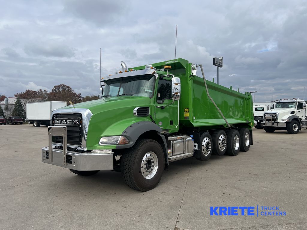Beautiful 2026 Granite Quad Dump ready to go to work! -19’ Bibeau dump body unfitted by Stainless & Repair -Mack MP8 engine with 445 HP and 1850 torque -Mack mDrive 12 speed transmission -44k Mack rear axles with full diff lock and air ride suspension -3.40 gear ratio -20k front axle rating